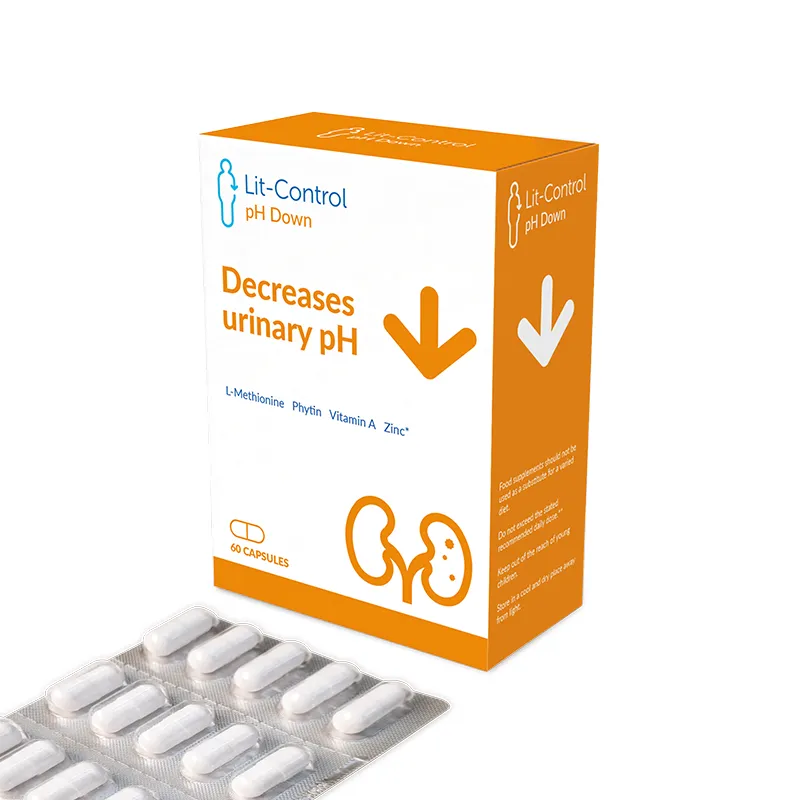 🔹 Lit Control pH Up – vhodný pri potrebe zvýšenia pH moču napr. pri kyslom moči, spojenom s tvorbou kameňov na báze kyseliny močovej a pri ich rozpúšťaní.